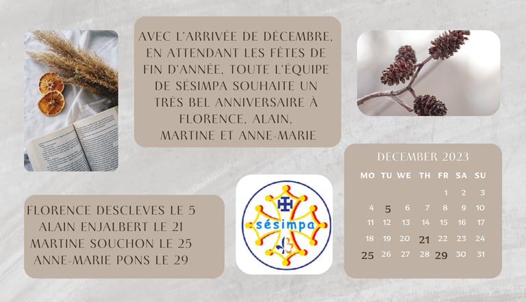 Anniversaire en novembre et décembre 23